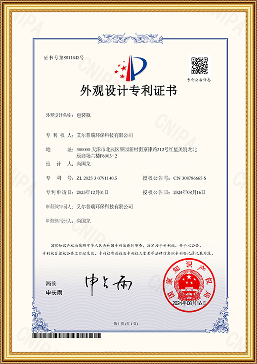 • 實用新型專利證書(一種負氧離子清除液的噴涂